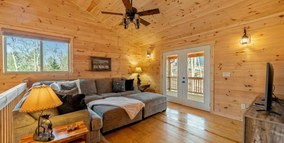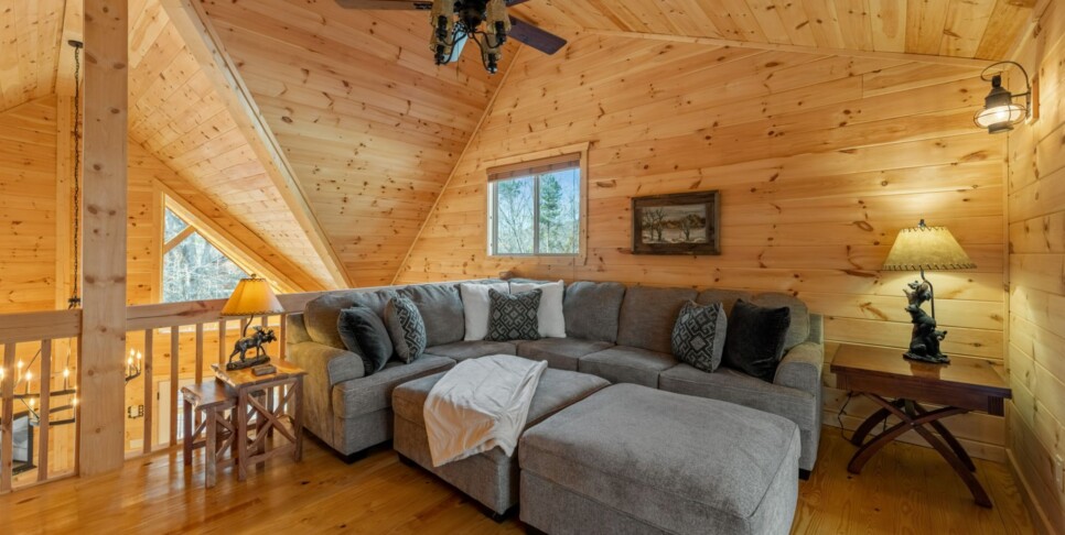 Additional conveniences at your Blue Ridge Mountain cabin in Ellijay include 3 full bathrooms, a washer/dryer, internet, paved parking, keyless entry, a desk area for work, a loft with a TV and large sofa, and more!