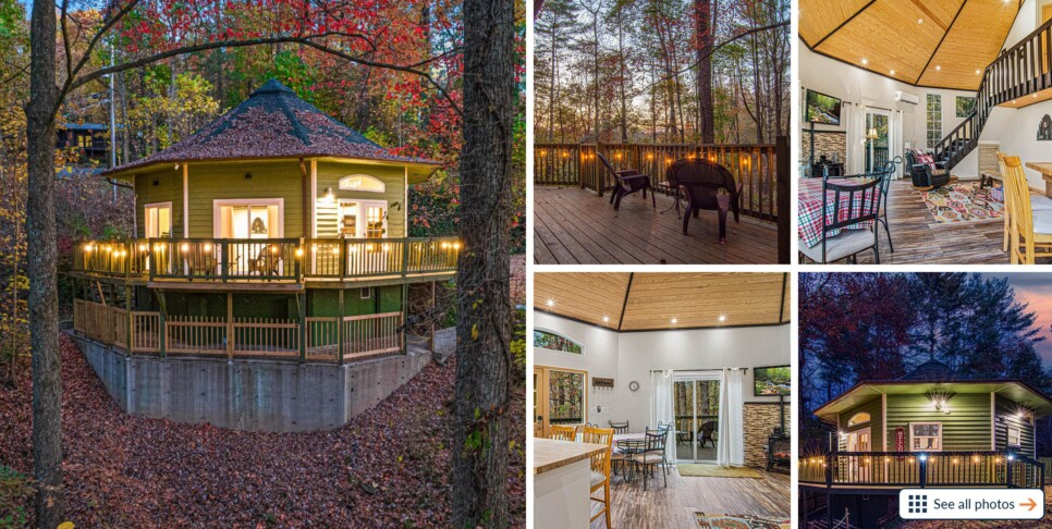 Outside, you’ll find a wraparound deck with string lights, a sitting area, a gas grill, and a separate private deck for enjoying the serenity of the Blue Ridge Mountains in every season. Plan your unforgettable North Georgia experience at Trails End today!