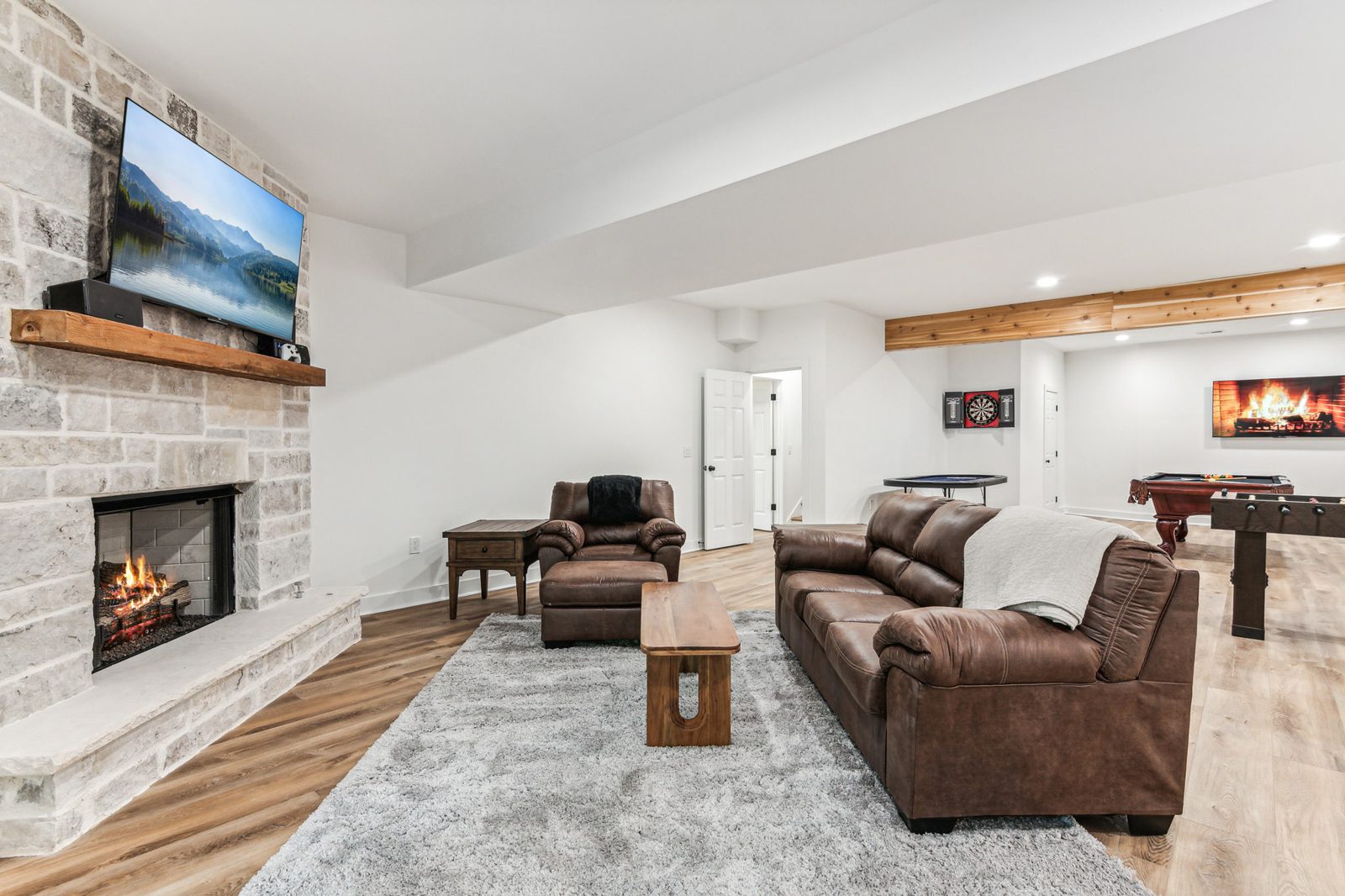 Retreat to 5 comfortable bedrooms with a mix of 2 king, 5 queen, and a twin bed — plus a twin bed with a trundle in the upstairs loft and a sleeper sofa in the downstairs game room — accommodating up to 19 guests. Relax in the main-level primary suite with its private sitting area and spa-like en-suite bath featuring a garden tub and separate step-in shower. Explore downtown Jasper, GA, just 15 minutes away, or simply settle in and savor your North Georgia mountain escape together.