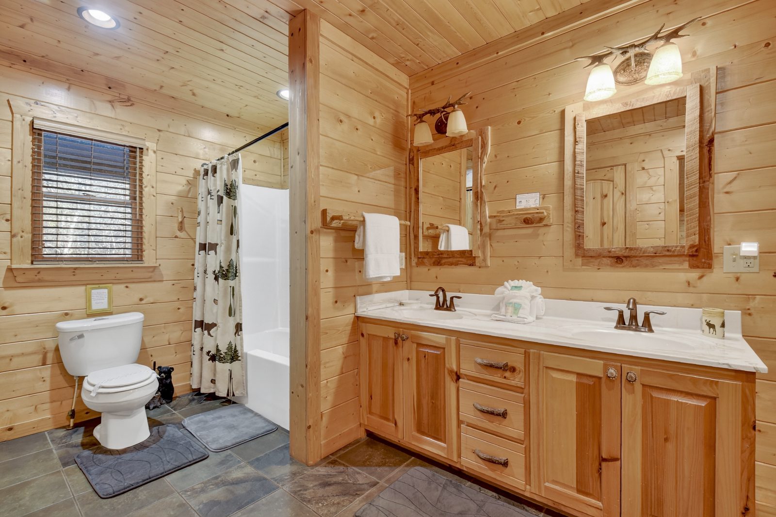 Among the 5 bedrooms, you’ll have streaming TVs in each room plus a mix of 3 king beds, 1 queen bed, and 1 full bed. In addition to the primary suite, 2 other bedrooms open to the great outdoors. Additional amenities for your family vacation or weekend getaway with friends include keyless entry for self-check-in, free Wi-Fi to stay connected, 2 shower/tub combos plus 1 walk-in shower, a full-size washer/dryer for laundry as needed, and seasonal Christmas decorations for a magical stay.